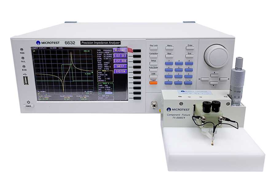 MICROTEST 6632S阻抗分析儀提供10Hz-50MHz寬頻率範圍量測元件/材料阻抗特性,量測參數包含|Z|(阻抗)、|Y|(導納)、θ(相位角)、X(電抗)、R(串並聯電阻)、G(電導)、B(電納)、L(電感)、D(損耗因數)、Q(品質因數)、DCR(直流電阻) 、C(電容)、ESR(等效串聯電阻) 、ε (相對介電係數)、μr (相對導磁係數),支援Meter模式與掃圖分析模式,因此量測結果以數字或圖形方式顯示,支援等效電路分析功能(Equivalent Circuit Analysis)進行三元件/四元件阻抗分析,支援LAN/USB Host/USB Device/GPIB/RS-232通訊接口,可搭載自動化設備或人機介面(PLC)。