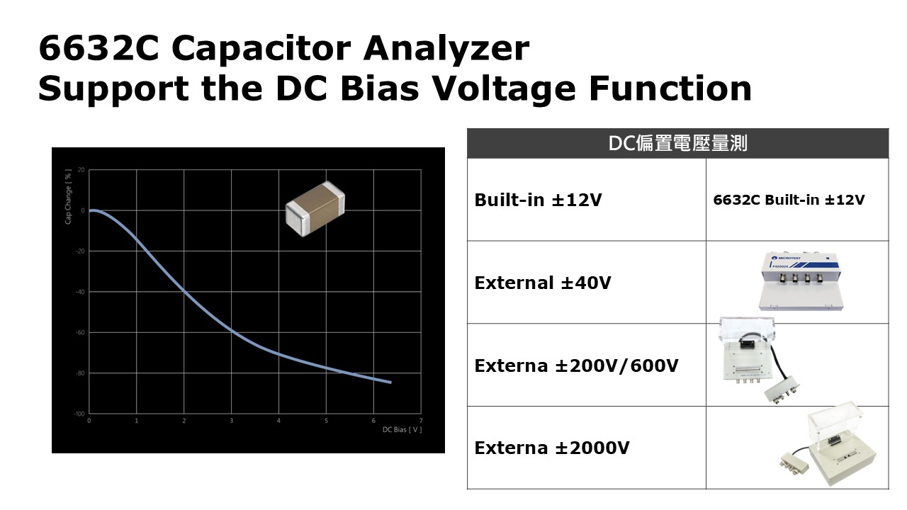With a built-in ±12 V DC bias, it performs direct bias sweeps for fast C-V curve plotting. The integrated dielectric constant (εr) function streamlines dielectric parameter analysis. Ideal for both R&D and production testing.
