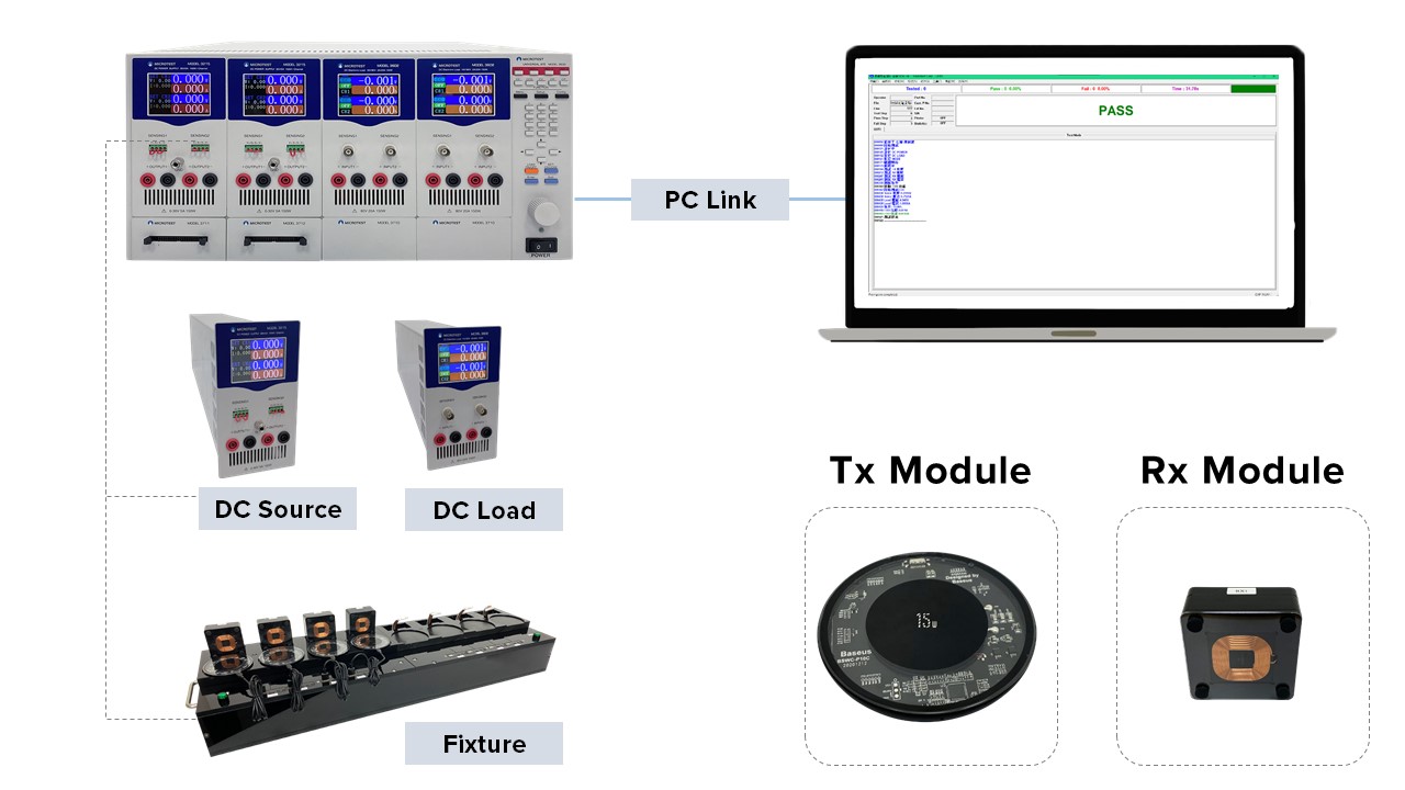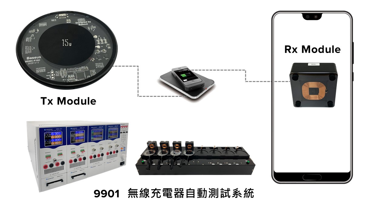 9901無線充電器自動測試系統可用於檢測成品-無線充電器或半成品-無線充電模組進行電源相關的參數檢測,此外安全性的檢測項目更提供了FOD異物偵測的測試功能,把關無線充電器的最高品質與安全性。
