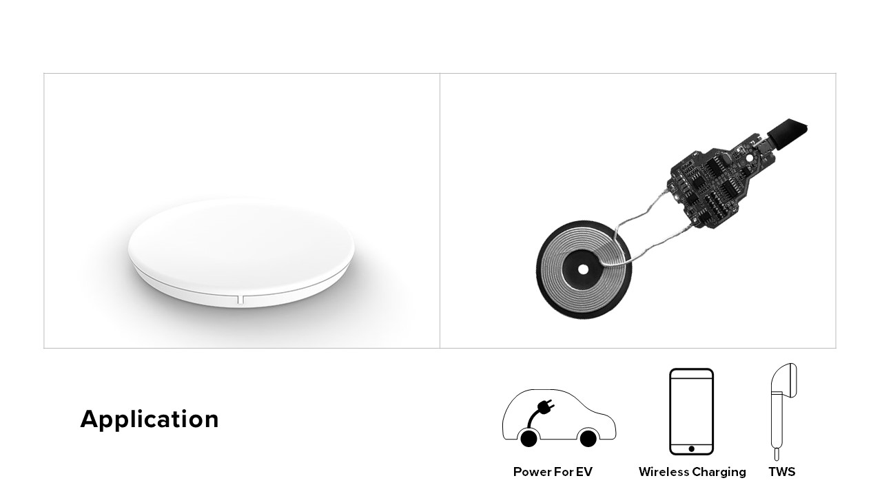 充電板和接收裝置均含有無線充電線圈,發射線圈Tx位於充電板內,接收線圈Rx安裝於電子產品的背面,與電池相連,發射端可以進行電力轉換,發射交變電磁場,當接收端處於該磁場範圍內,所傳輸的能量則可以轉換成電流,電流再從充電板送達至電子產品之電池,進行無線充電。